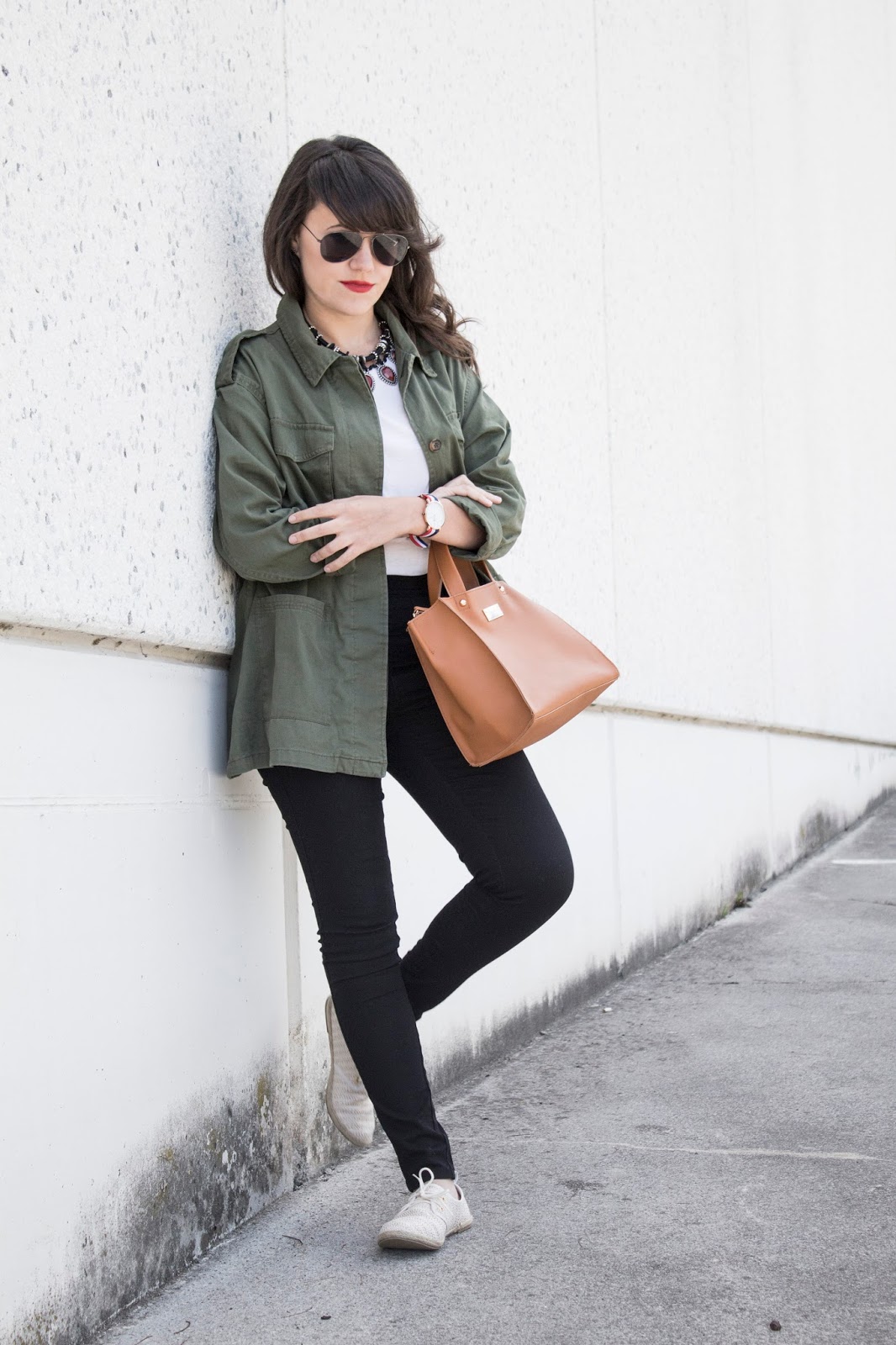 Esta es mi visión de un outfit relax. No es ninguna novedad, ni estoy reinventando nada nuevo. Verde militar, negro, blanco y un collar llamativo, estos son los ingredientes básicos del look de hoy. No os perdáis los detalles.